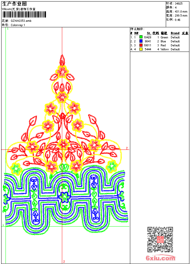 - emb花版参数: 大小:118.50 KB / 尺寸:300*431[毫米] / 针数:34925针 / 线色:4 / 格式:emb / 版本:7