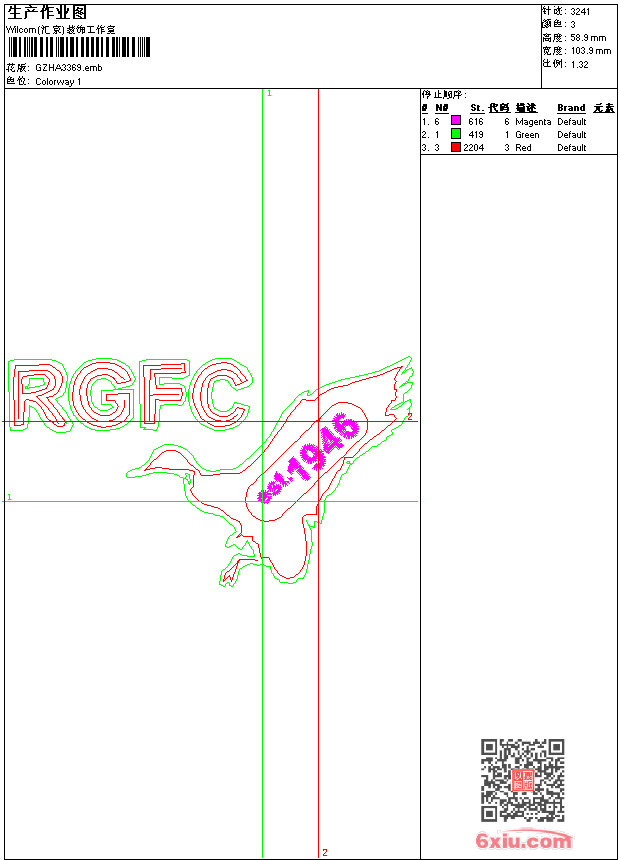 rgfc est 1946 emb花版参数: 大小:32.50 KB / 尺寸:104*59[毫米] / 针数:3241针 / 线色:3 / 格式:emb / 版本:9 版带文件需绣花软件方可打开,可配色打印导出各种格式或直接上机绣。如无绣花软件可下载1:1模拟效果图。 PNG图片信息:大小:0.1(MB) /图宽*高:394x223(像素) emb下载 1:1图下载 关闭 相关花版: 叶花包针衣 弹头状复杂抽象主题花纹 扇形状圆星 三角状小花衣领 孔雀尾巴状叶花衣 冠状病毒状抽象衣 圆轮条状裙裤 放射状抽象衣男 衣花单针贴布 蝴蝶 fitch unversity 英文 英文字母naval est sb raw 两匹马kappa italia riding club 衣锁链针叶花复杂 男裤抽象英文 米奇骑月亮卡通 字母叶花days 网格叶花 珠片叶花 裙网状格子摆叶花 大幅经典叶花插针 衣喇叭花 胸章仔sport fashion classic 领包针 英文字母曲线 衣叶花插针 领主题花纹 衣链状主题花纹 章仔狮子盾牌 裙麻花倒锥抽象