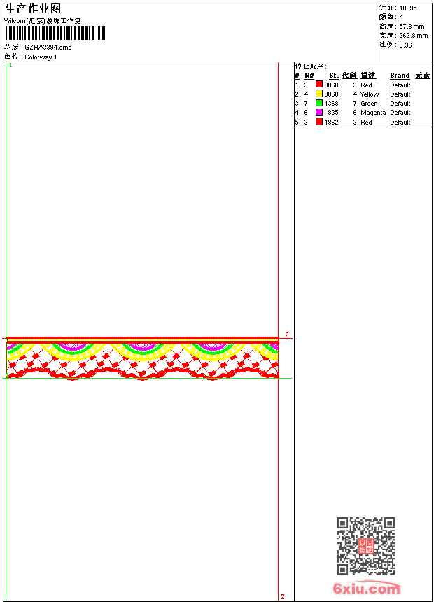- emb花版参数: 大小:85.00 KB / 尺寸:364*58[毫米] / 针数:10995针 / 线色:4 / 格式:emb / 版本:9
