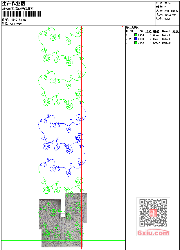 - emb花版参数: 大小:12.98 MB / 尺寸:466*2101[毫米] / 针数:7924针 / 线色:2 / 格式:emb / 版本:7