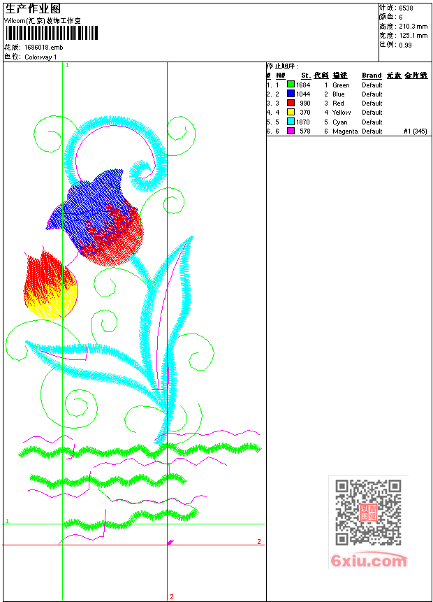 - emb花版参数: 大小:36.50 KB / 尺寸:125*210[毫米] / 针数:6538针 / 线色:6 / 格式:emb / 版本:7