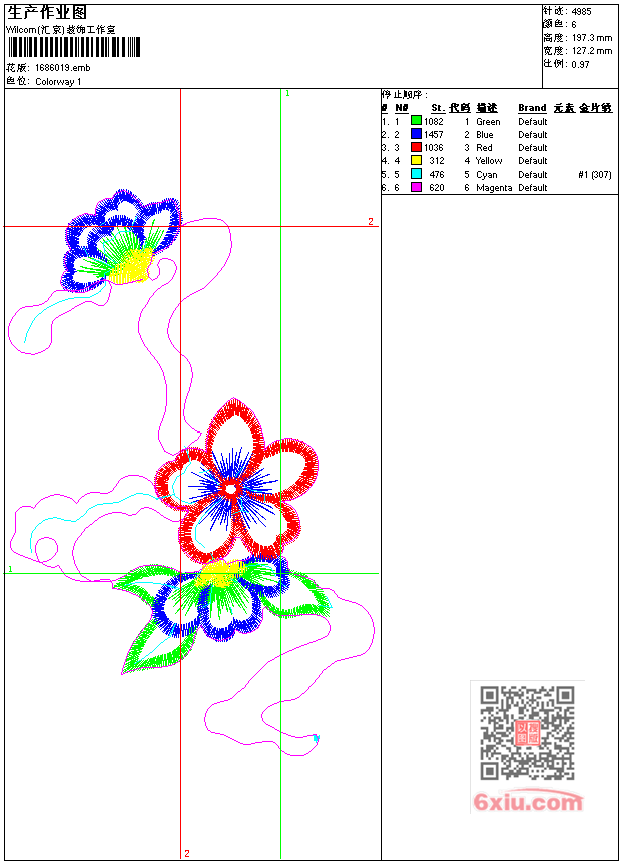 - emb花版参数: 大小:36.50 KB / 尺寸:127*197[毫米] / 针数:4985针 / 线色:6 / 格式:emb / 版本:7
