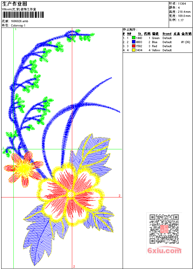 - emb花版参数: 大小:54.50 KB / 尺寸:109*218[毫米] / 针数:11364针 / 线色:4 / 格式:emb / 版本:7