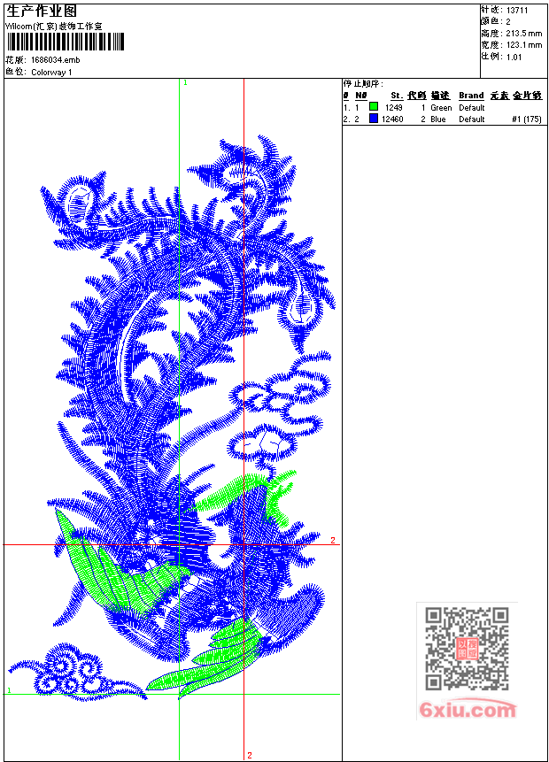 - emb花版参数: 大小:81.50 KB / 尺寸:123*214[毫米] / 针数:13711针 / 线色:2 / 格式:emb / 版本:7