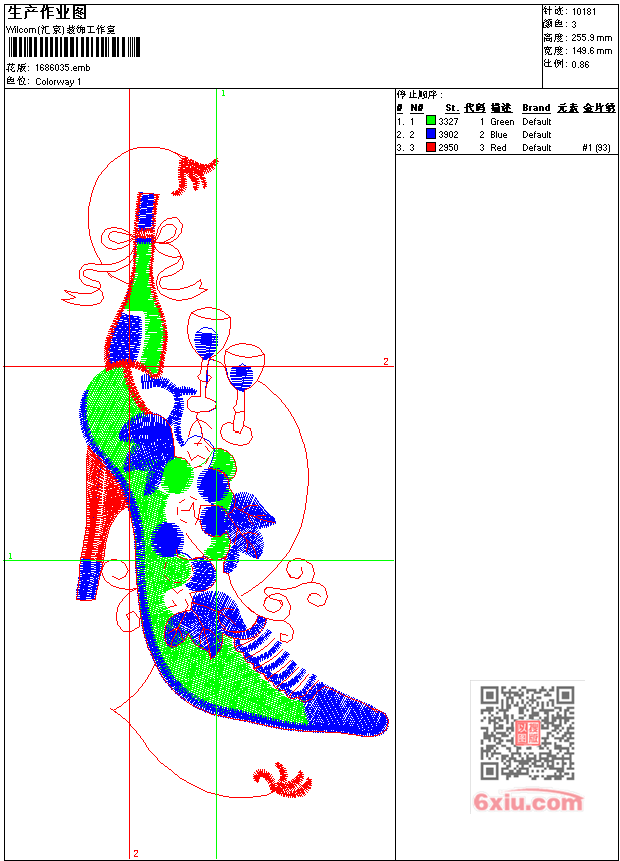 - emb花版参数: 大小:46.50 KB / 尺寸:150*256[毫米] / 针数:10181针 / 线色:3 / 格式:emb / 版本:7