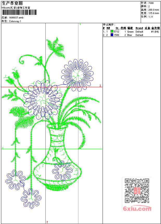 - emb花版参数: 大小:43.50 KB / 尺寸:116*200[毫米] / 针数:7300针 / 线色:2 / 格式:emb / 版本:7