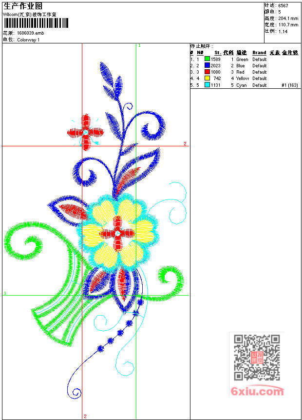 - emb花版参数: 大小:42.50 KB / 尺寸:111*204[毫米] / 针数:6567针 / 线色:5 / 格式:emb / 版本:7