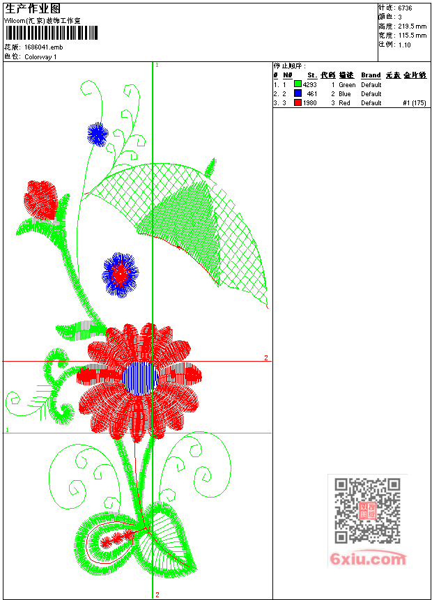 - emb花版参数: 大小:35.00 KB / 尺寸:116*220[毫米] / 针数:6736针 / 线色:3 / 格式:emb / 版本:7