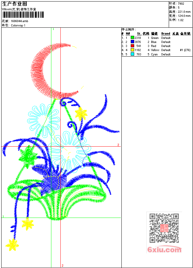 - emb花版参数: 大小:44.50 KB / 尺寸:124*221[毫米] / 针数:7902针 / 线色:5 / 格式:emb / 版本:7