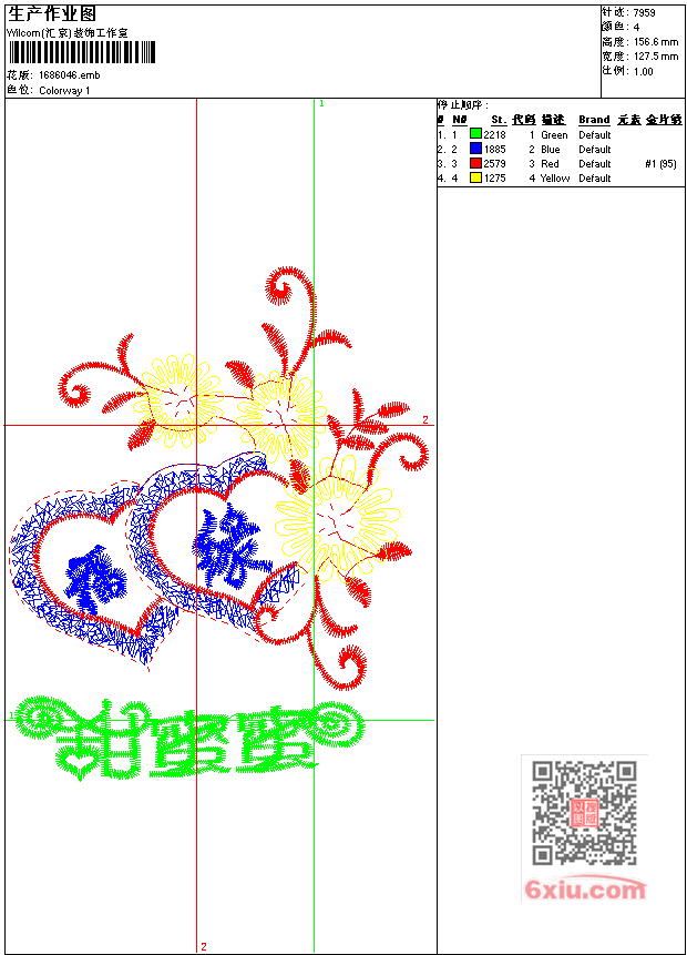 - emb花版参数: 大小:54.00 KB / 尺寸:128*157[毫米] / 针数:7959针 / 线色:4 / 格式:emb / 版本:7