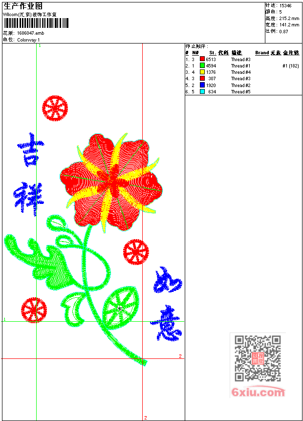 - emb花版参数: 大小:113.00 KB / 尺寸:141*215[毫米] / 针数:15346针 / 线色:5 / 格式:emb / 版本:7