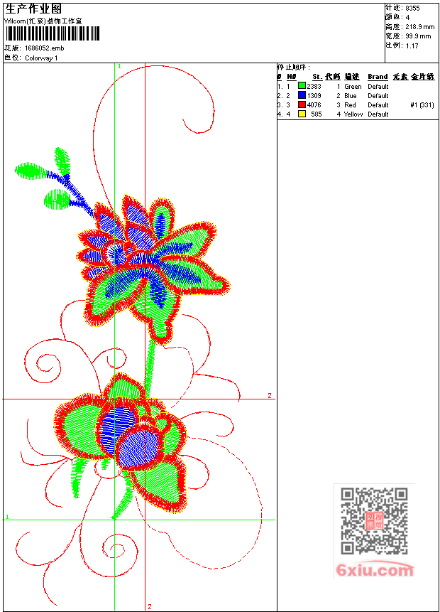 - emb花版参数: 大小:50.50 KB / 尺寸:100*219[毫米] / 针数:8355针 / 线色:4 / 格式:emb / 版本:7