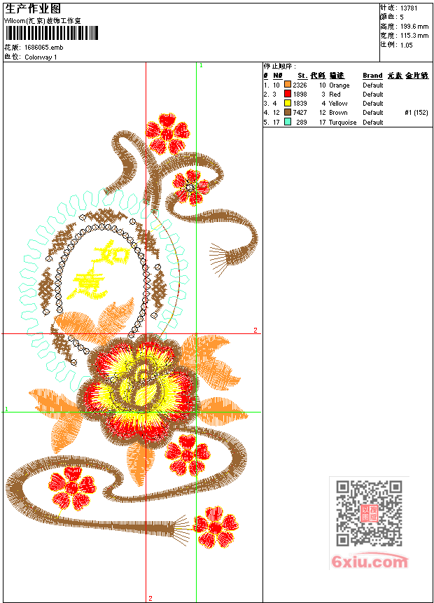 - emb花版参数: 大小:98.00 KB / 尺寸:115*200[毫米] / 针数:13781针 / 线色:5 / 格式:emb / 版本:7