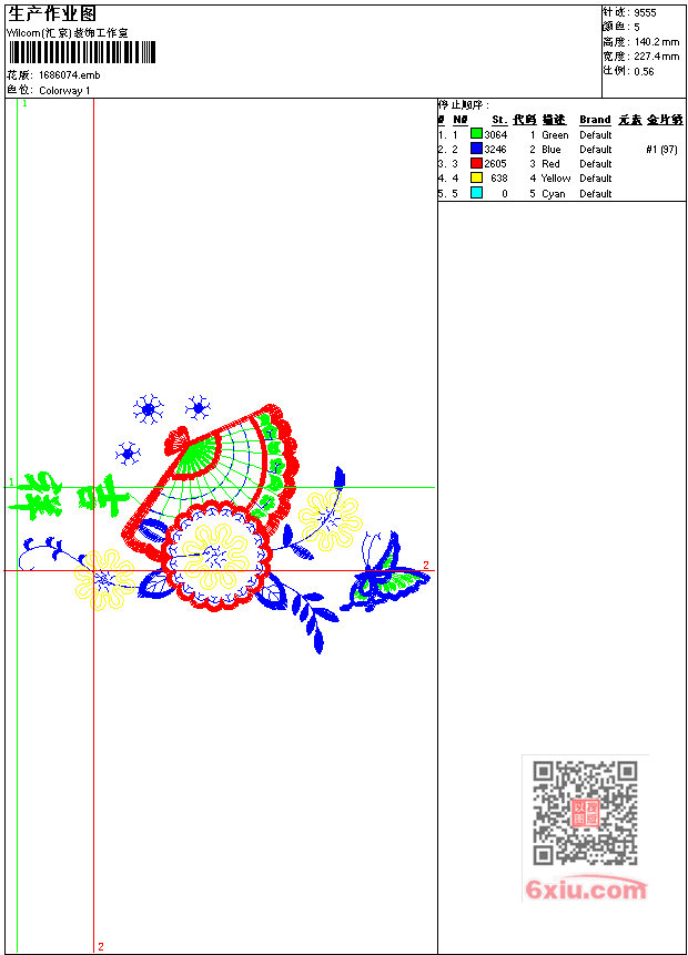 - emb花版参数: 大小:64.50 KB / 尺寸:227*140[毫米] / 针数:9555针 / 线色:5 / 格式:emb / 版本:7