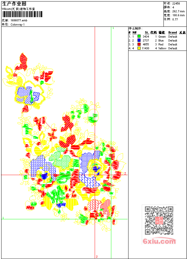 - emb花版参数: 大小:81.50 KB / 尺寸:181*263[毫米] / 针数:22458针 / 线色:4 / 格式:emb / 版本:7