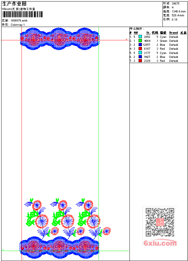 - emb花版参数: 大小:117.00 KB / 尺寸:528*1341[毫米] / 针数:39675针 / 线色:4 / 格式:emb / 版本:7