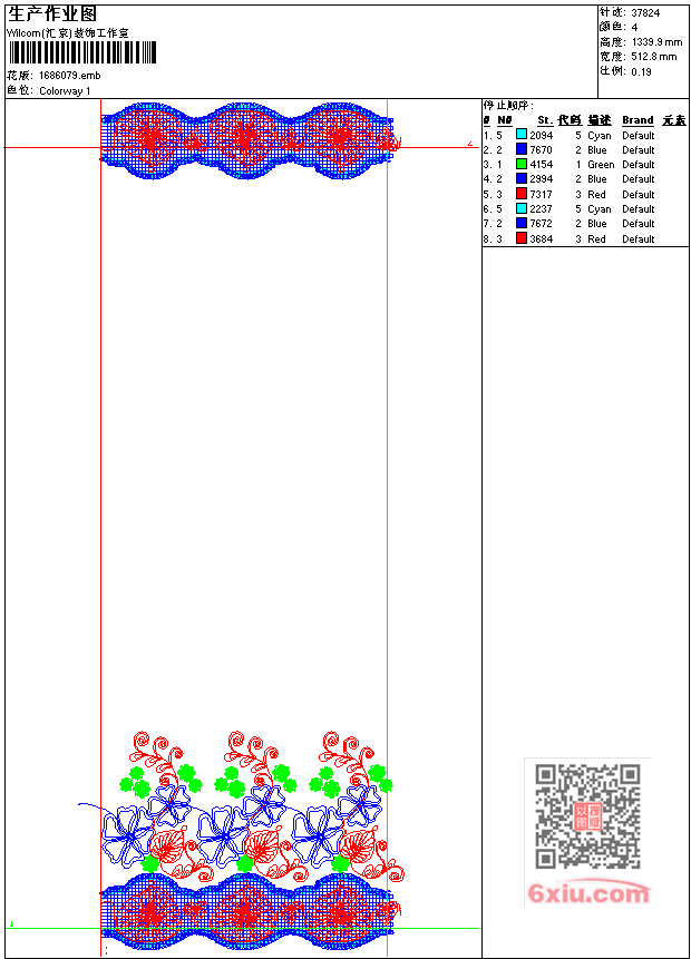 - emb花版参数: 大小:121.00 KB / 尺寸:513*1340[毫米] / 针数:37824针 / 线色:4 / 格式:emb / 版本:7