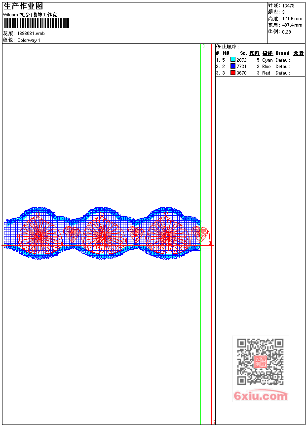 - emb花版参数: 大小:47.50 KB / 尺寸:487*122[毫米] / 针数:13475针 / 线色:3 / 格式:emb / 版本:7