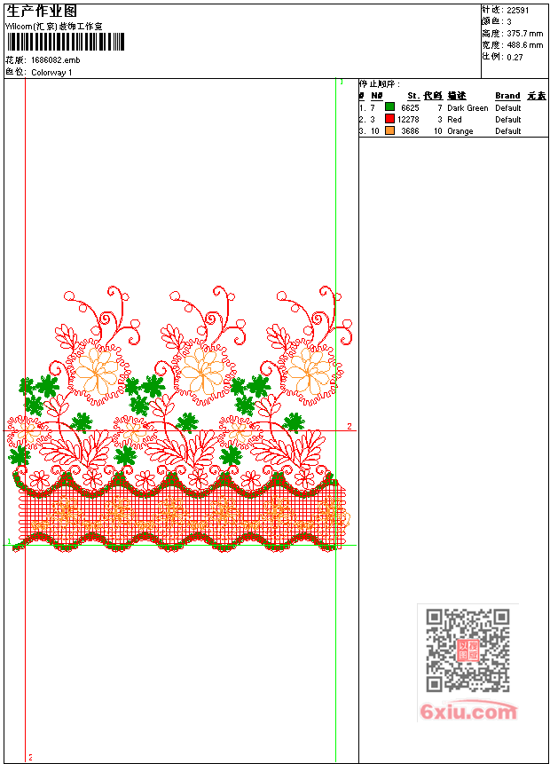 - emb花版参数: 大小:96.50 KB / 尺寸:489*376[毫米] / 针数:22591针 / 线色:3 / 格式:emb / 版本:7