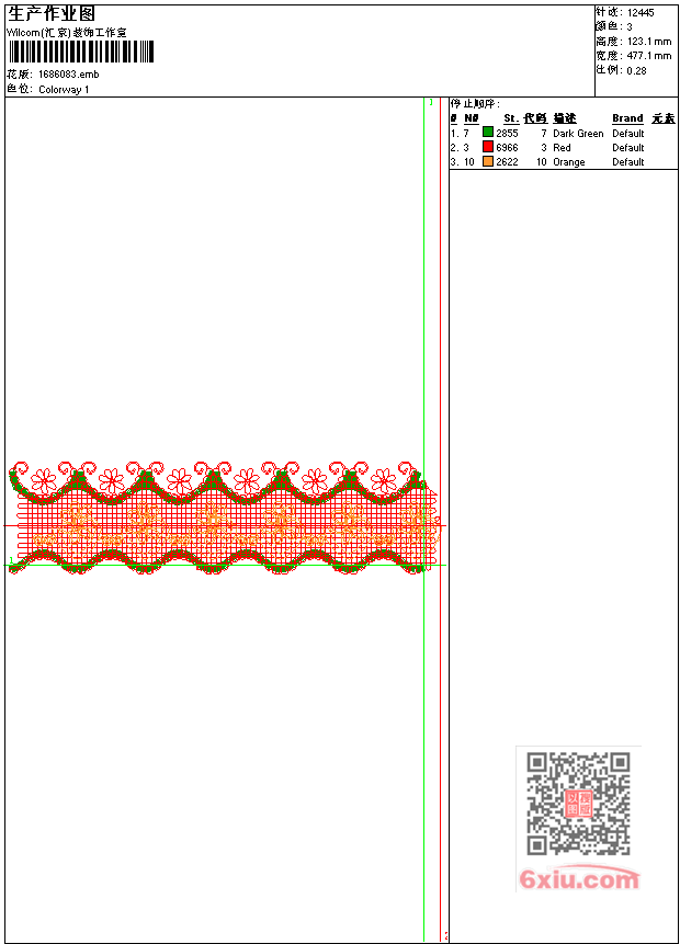 - emb花版参数: 大小:50.00 KB / 尺寸:477*123[毫米] / 针数:12445针 / 线色:3 / 格式:emb / 版本:7