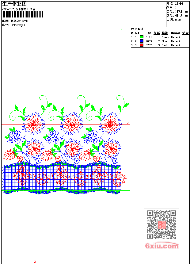 - emb花版参数: 大小:75.00 KB / 尺寸:494*386[毫米] / 针数:22994针 / 线色:3 / 格式:emb / 版本:7