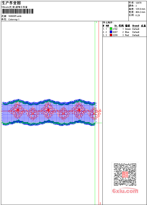 - emb花版参数: 大小:41.50 KB / 尺寸:484*130[毫米] / 针数:12670针 / 线色:3 / 格式:emb / 版本:7