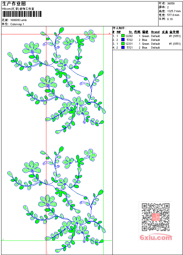 - emb花版参数: 大小:228.50 KB / 尺寸:578*1326[毫米] / 针数:36058针 / 线色:2 / 格式:emb / 版本:7