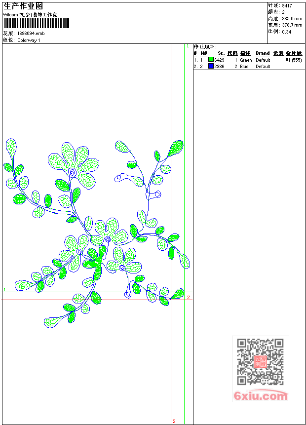 - emb花版参数: 大小:72.50 KB / 尺寸:379*385[毫米] / 针数:9417针 / 线色:2 / 格式:emb / 版本:7