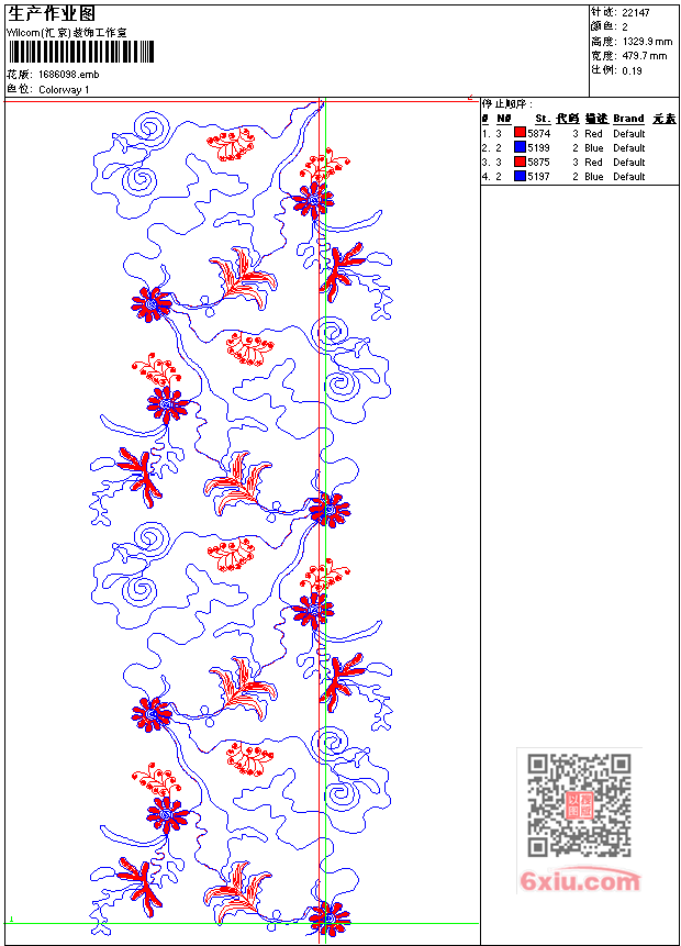 - emb花版参数: 大小:154.50 KB / 尺寸:480*1330[毫米] / 针数:22147针 / 线色:2 / 格式:emb / 版本:7