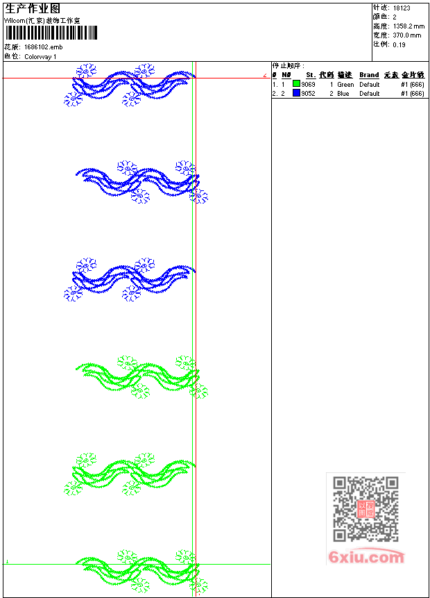 - emb花版参数: 大小:63.50 KB / 尺寸:370*1358[毫米] / 针数:18123针 / 线色:2 / 格式:emb / 版本:7