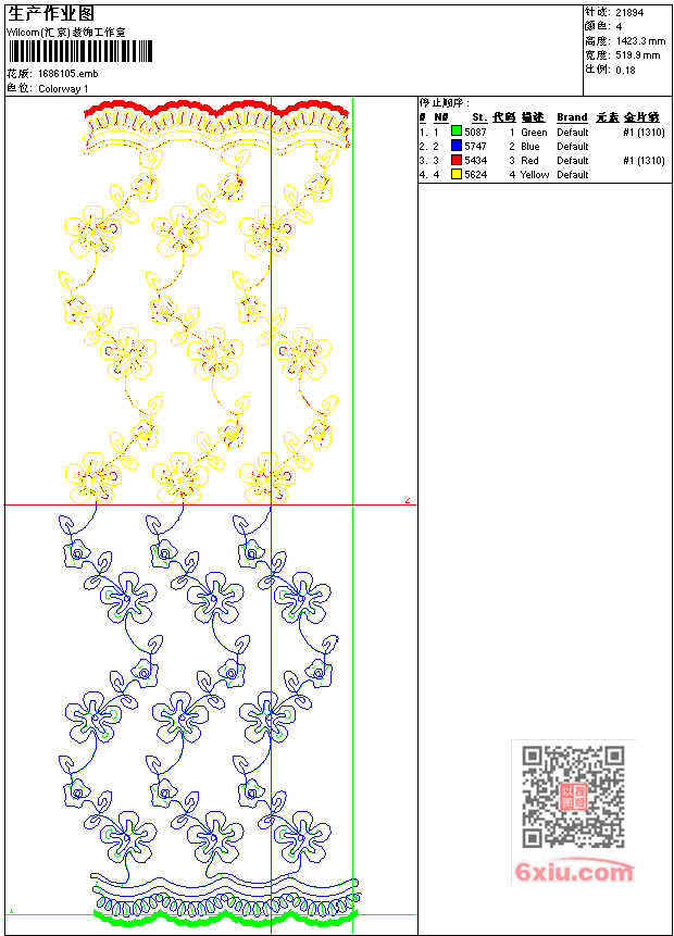 - emb花版参数: 大小:75.50 KB / 尺寸:520*1423[毫米] / 针数:21894针 / 线色:4 / 格式:emb / 版本:7