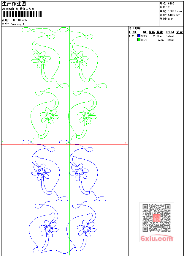 - emb花版参数: 大小:37.50 KB / 尺寸:511*1360[毫米] / 针数:6105针 / 线色:2 / 格式:emb / 版本:7