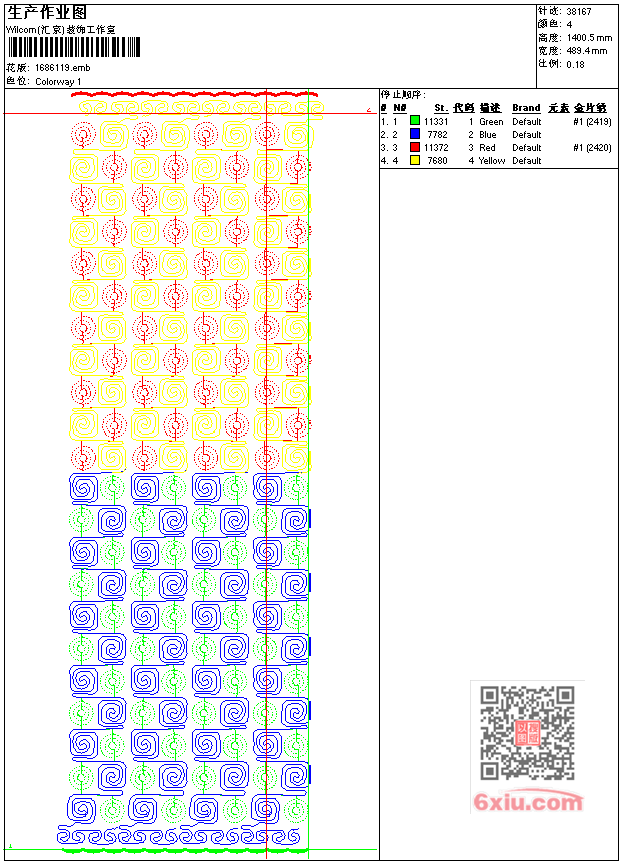 - emb花版参数: 大小:83.00 KB / 尺寸:489*1401[毫米] / 针数:38167针 / 线色:4 / 格式:emb / 版本:7