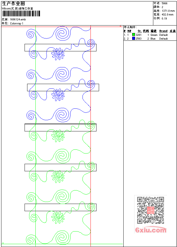 - emb花版参数: 大小:37.50 KB / 尺寸:432*1371[毫米] / 针数:5866针 / 线色:2 / 格式:emb / 版本:7