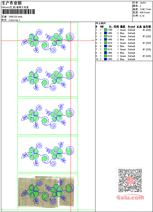- emb花版参数: 大小:378.00 KB / 尺寸:430*1343[毫米] / 针数:16351针 / 线色:2 / 格式:emb / 版本:7