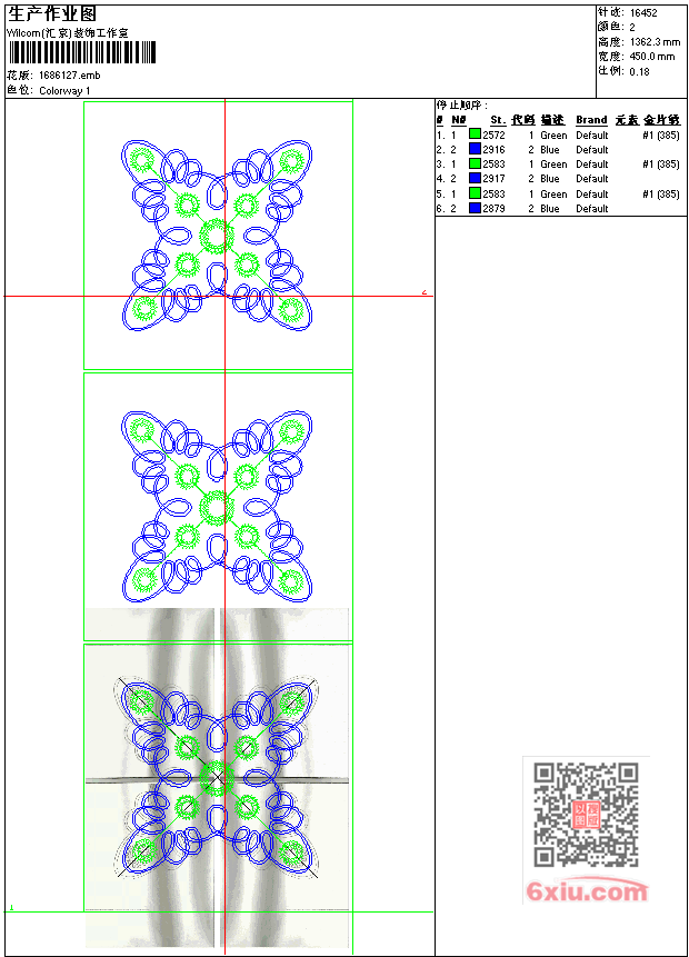 - emb花版参数: 大小:501.00 KB / 尺寸:450*1362[毫米] / 针数:16452针 / 线色:2 / 格式:emb / 版本:7
