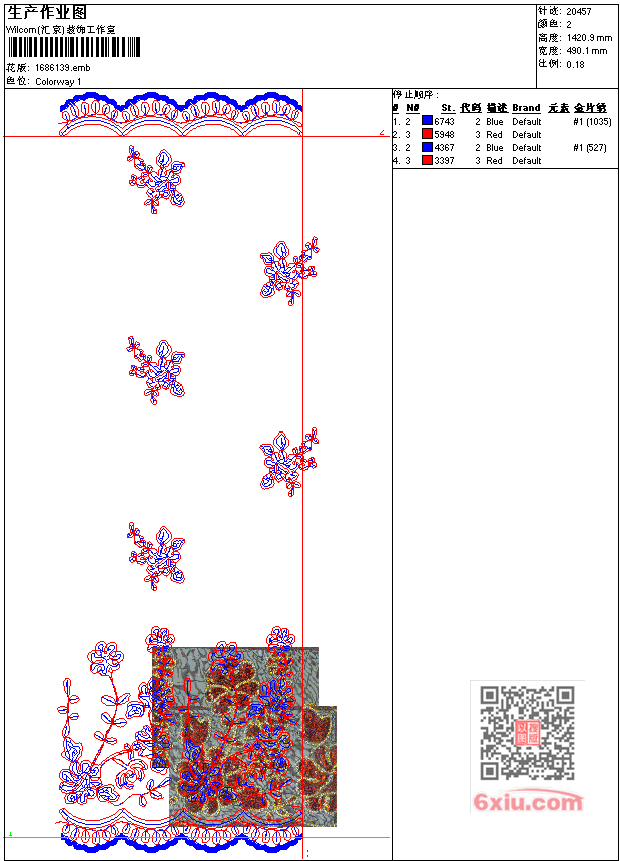 - emb花版参数: 大小:1.64 MB / 尺寸:490*1421[毫米] / 针数:20457针 / 线色:2 / 格式:emb / 版本:7