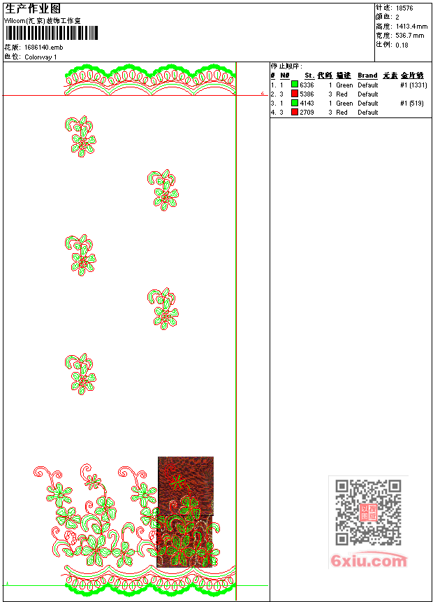 - emb花版参数: 大小:1.45 MB / 尺寸:537*1413[毫米] / 针数:18576针 / 线色:2 / 格式:emb / 版本:7