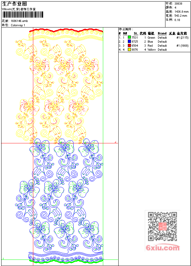 - emb花版参数: 大小:116.50 KB / 尺寸:543*1437[毫米] / 针数:30838针 / 线色:4 / 格式:emb / 版本:7