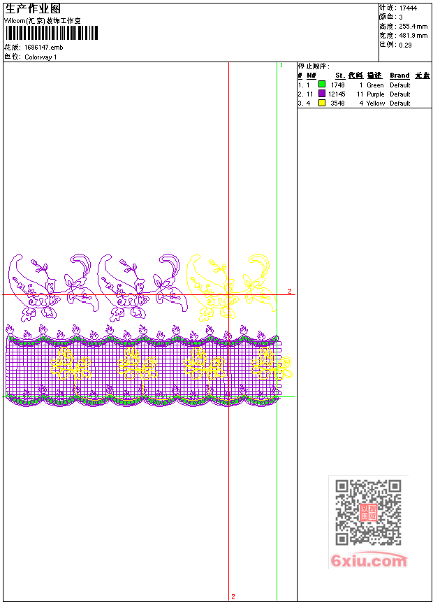 - emb花版参数: 大小:52.50 KB / 尺寸:482*255[毫米] / 针数:17444针 / 线色:3 / 格式:emb / 版本:7