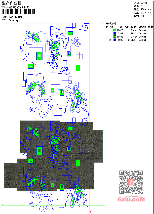 - emb花版参数: 大小:726.00 KB / 尺寸:502*1380[毫米] / 针数:33461针 / 线色:2 / 格式:emb / 版本:7