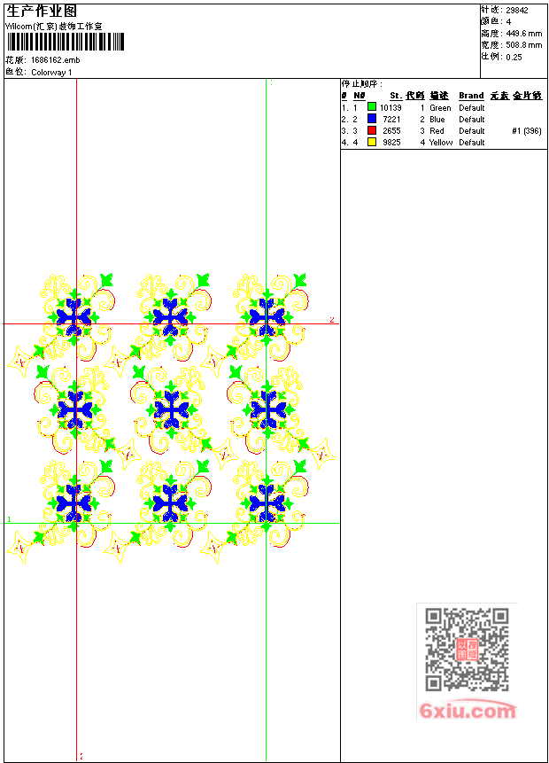- emb花版参数: 大小:102.50 KB / 尺寸:509*450[毫米] / 针数:29842针 / 线色:4 / 格式:emb / 版本:7