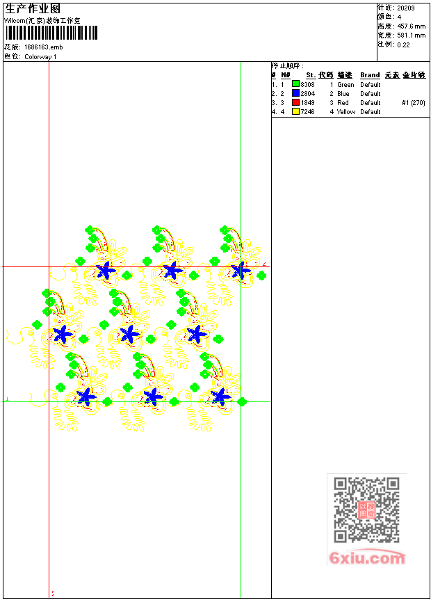 - emb花版参数: 大小:73.00 KB / 尺寸:581*458[毫米] / 针数:20209针 / 线色:4 / 格式:emb / 版本:7