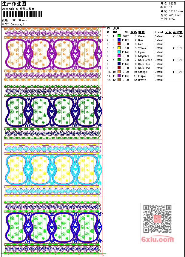 - emb花版参数: 大小:206.00 KB / 尺寸:471*1080[毫米] / 针数:92259针 / 线色:12 / 格式:emb / 版本:7