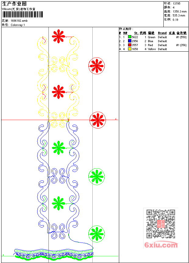 - emb花版参数: 大小:91.50 KB / 尺寸:535*1350[毫米] / 针数:13795针 / 线色:4 / 格式:emb / 版本:7