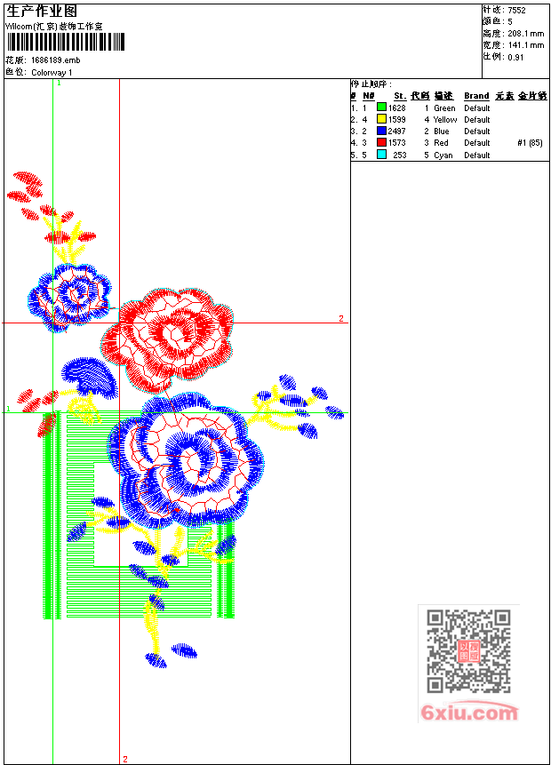 - 版带文件需绣花软件方可打开,可配色打印导出各种格式或直接上机绣。如无绣花软件可下载1:1模拟效果图。