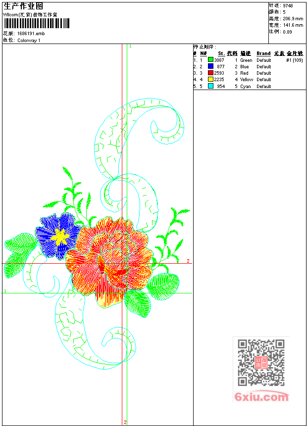 - emb花版参数: 大小:47.00 KB / 尺寸:142*207[毫米] / 针数:9748针 / 线色:5 / 格式:emb / 版本:7