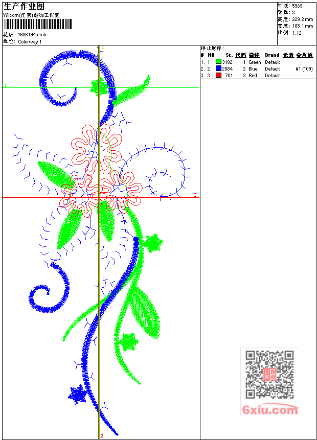 - emb花版参数: 大小:37.50 KB / 尺寸:105*229[毫米] / 针数:5969针 / 线色:3 / 格式:emb / 版本:7