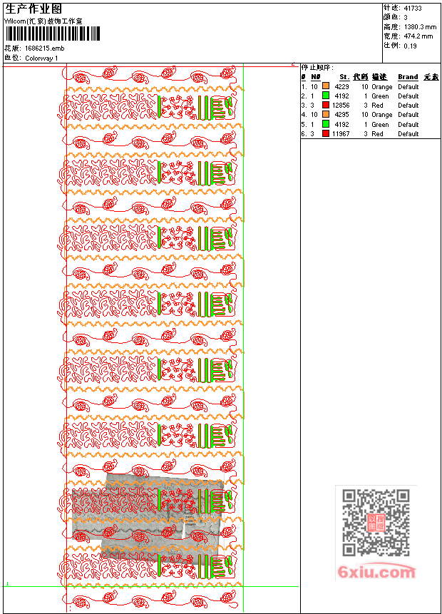 - emb花版参数: 大小:399.50 KB / 尺寸:474*1380[毫米] / 针数:41733针 / 线色:3 / 格式:emb / 版本:7