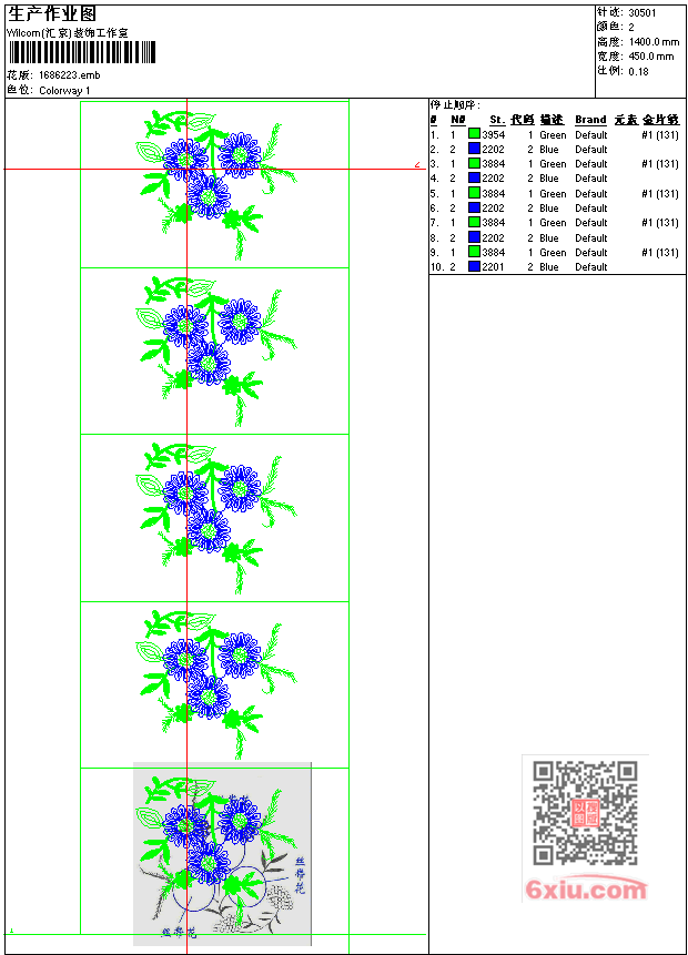 - emb花版参数: 大小:200.50 KB / 尺寸:450*1400[毫米] / 针数:30501针 / 线色:2 / 格式:emb / 版本:7